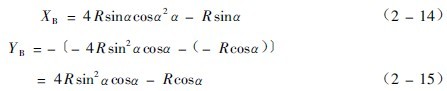 確定B點的坐標:B點是鋼球拋落的終點,也是它開始圓運動之點,所以它的坐標xb和yb即公式(2-6)和(2-7)聯立時的公解。將公式(2-7)中的y代入公式(2-6)中,然后逐步化簡,得到