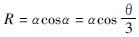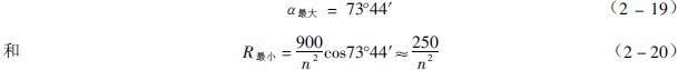 時R 的水平投影XB為極小值。由引可見,對目前所論述的問題說,這兩個極限值只有意義,它是與最小球層半徑R最小相對應的最大脫離角a最大。于是,判斷球層保持明顯的圓運動和拋物線運動的極限狀態的兩個相關連的指標是
