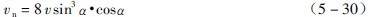 有關(guān),k可直接由表3-5-3中查取。又D0=2R0,則“中間縮聚層”上的一個(gè)球落到落回點(diǎn)襯板上的法向沖擊動(dòng)能En為