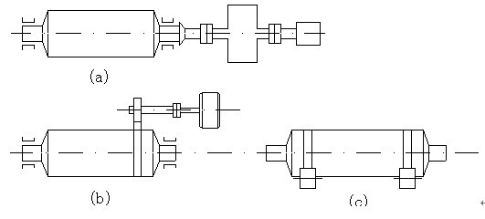 1、中心傳動。由卸料端經空心軸直接與減速機出軸聯接,由電動機帶動,傳動軸的中心與簡體中心線一致(圖2中a)。